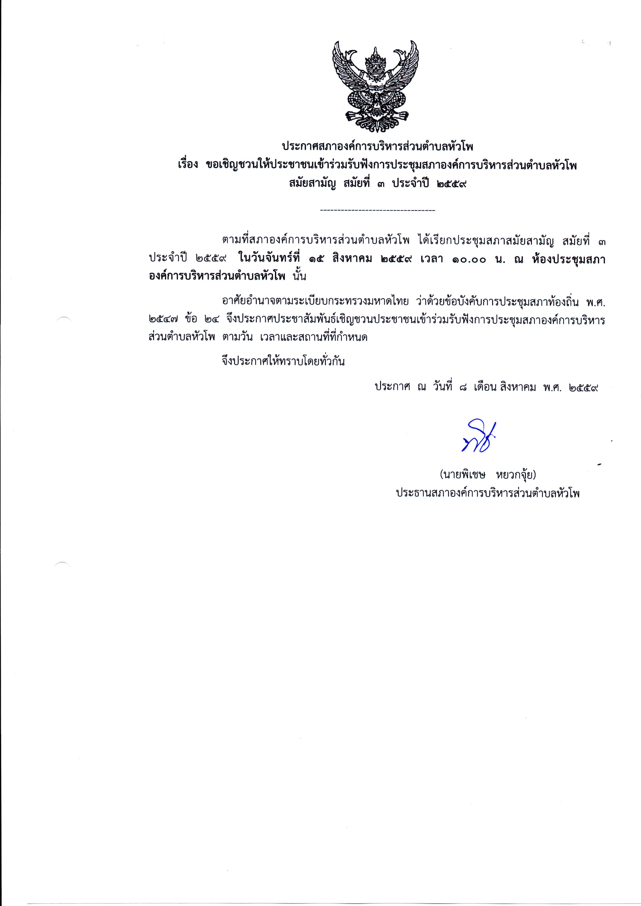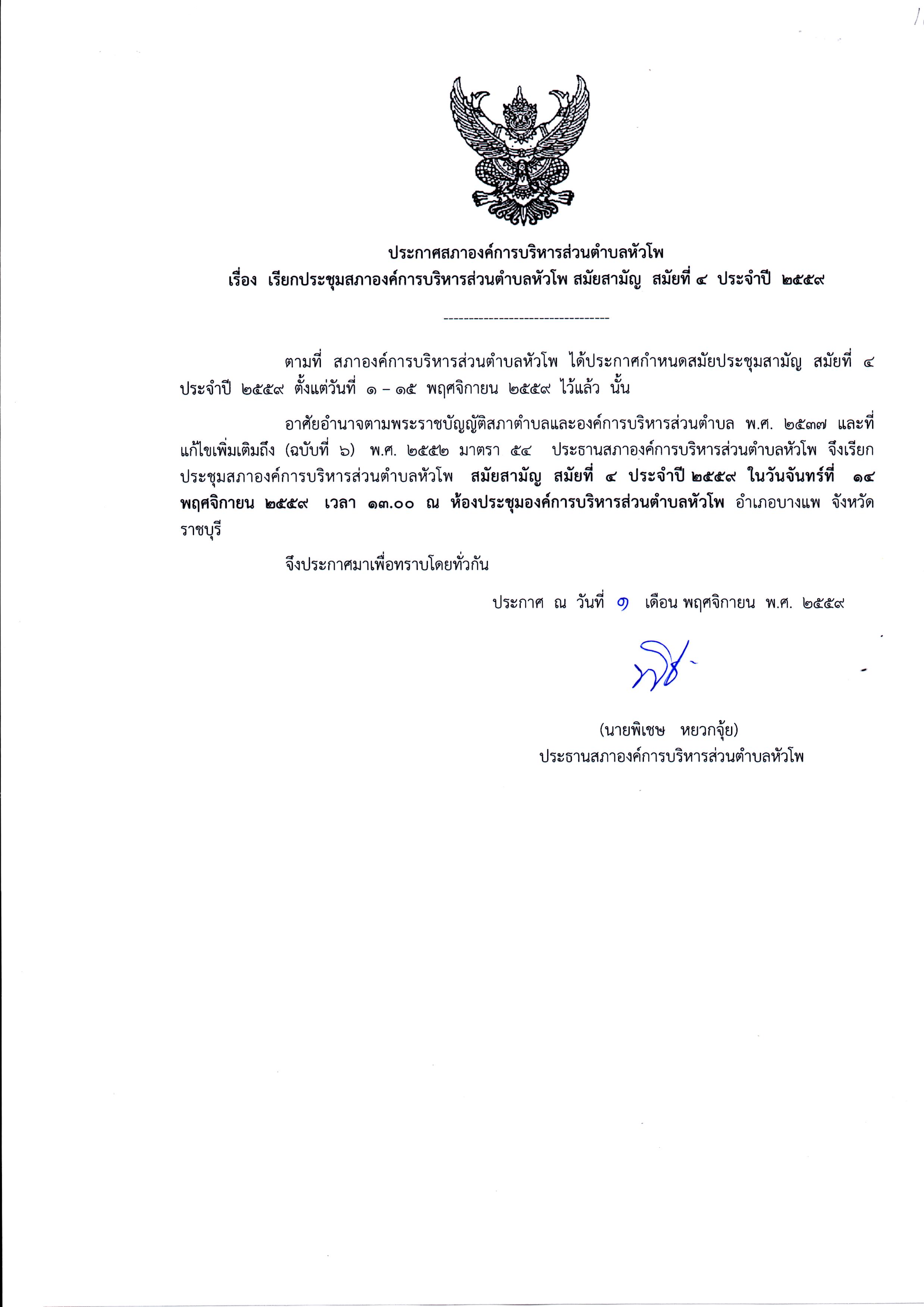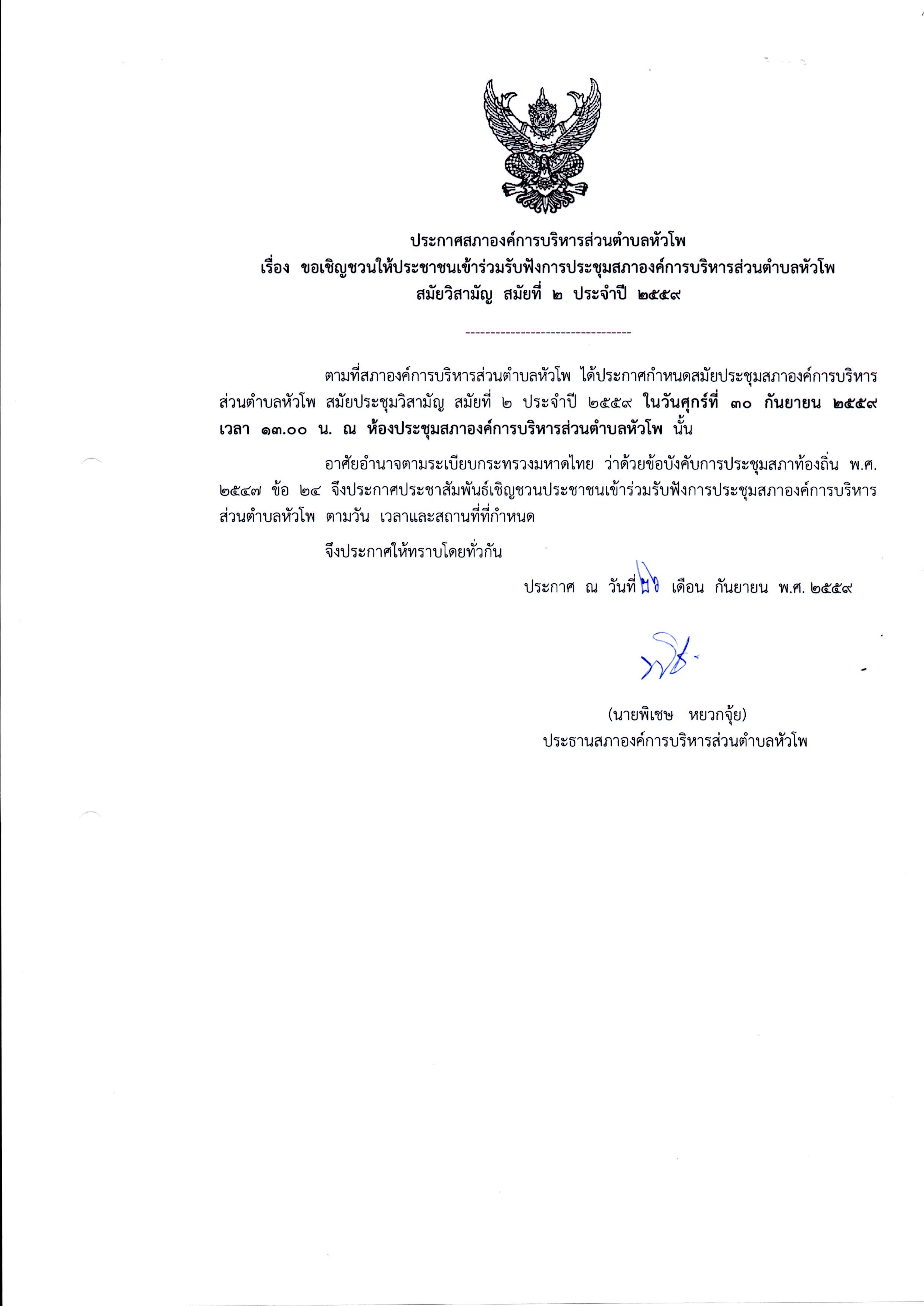 ประกาศสภาองค์การบริหารส่วนตำบลหัวโพ