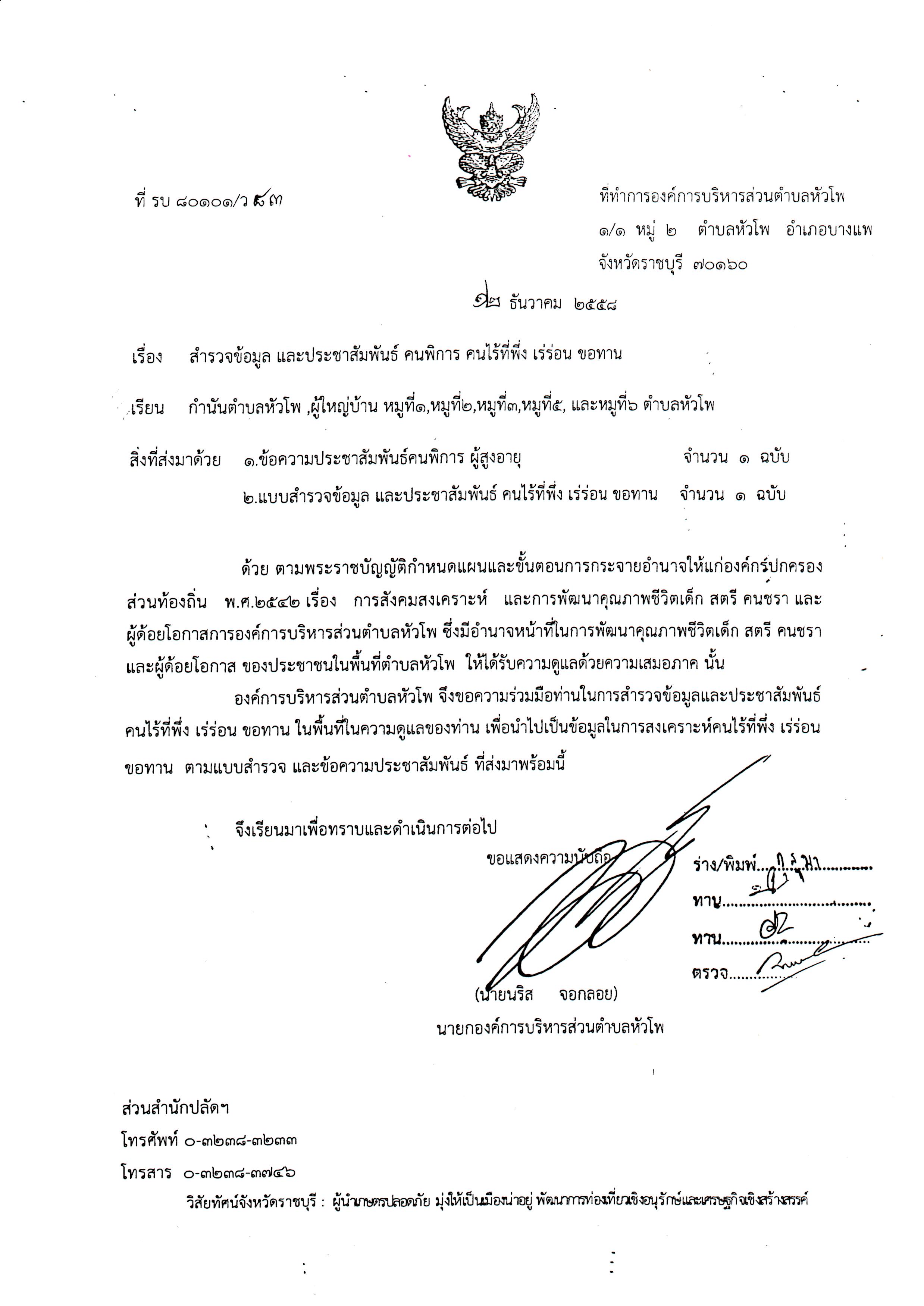 ช่องทางการติดต่อ องค์การบริหารส่วนตำบลหัวโพ