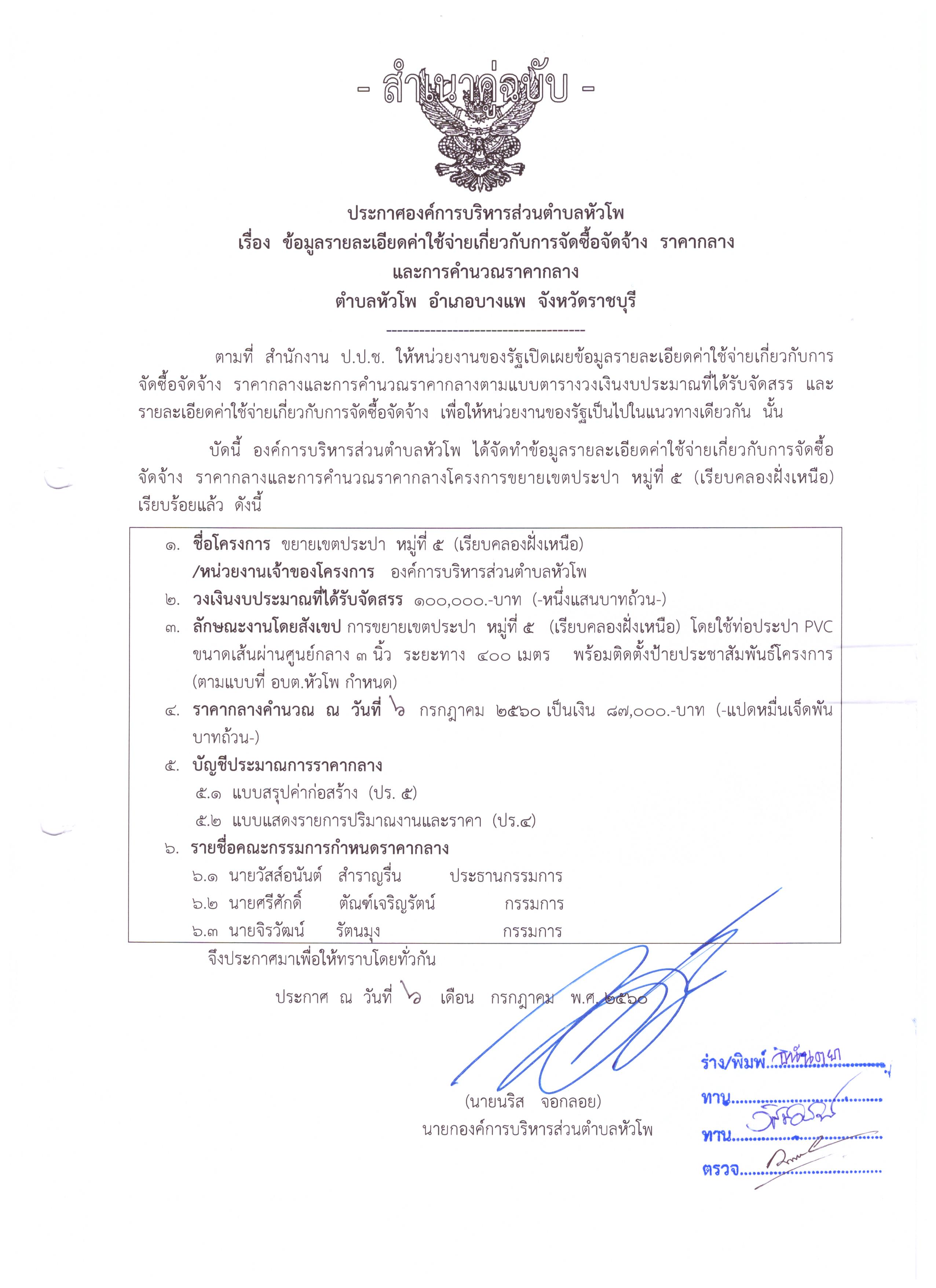 ช่องทางการติดต่อ องค์การบริหารส่วนตำบลหัวโพ
