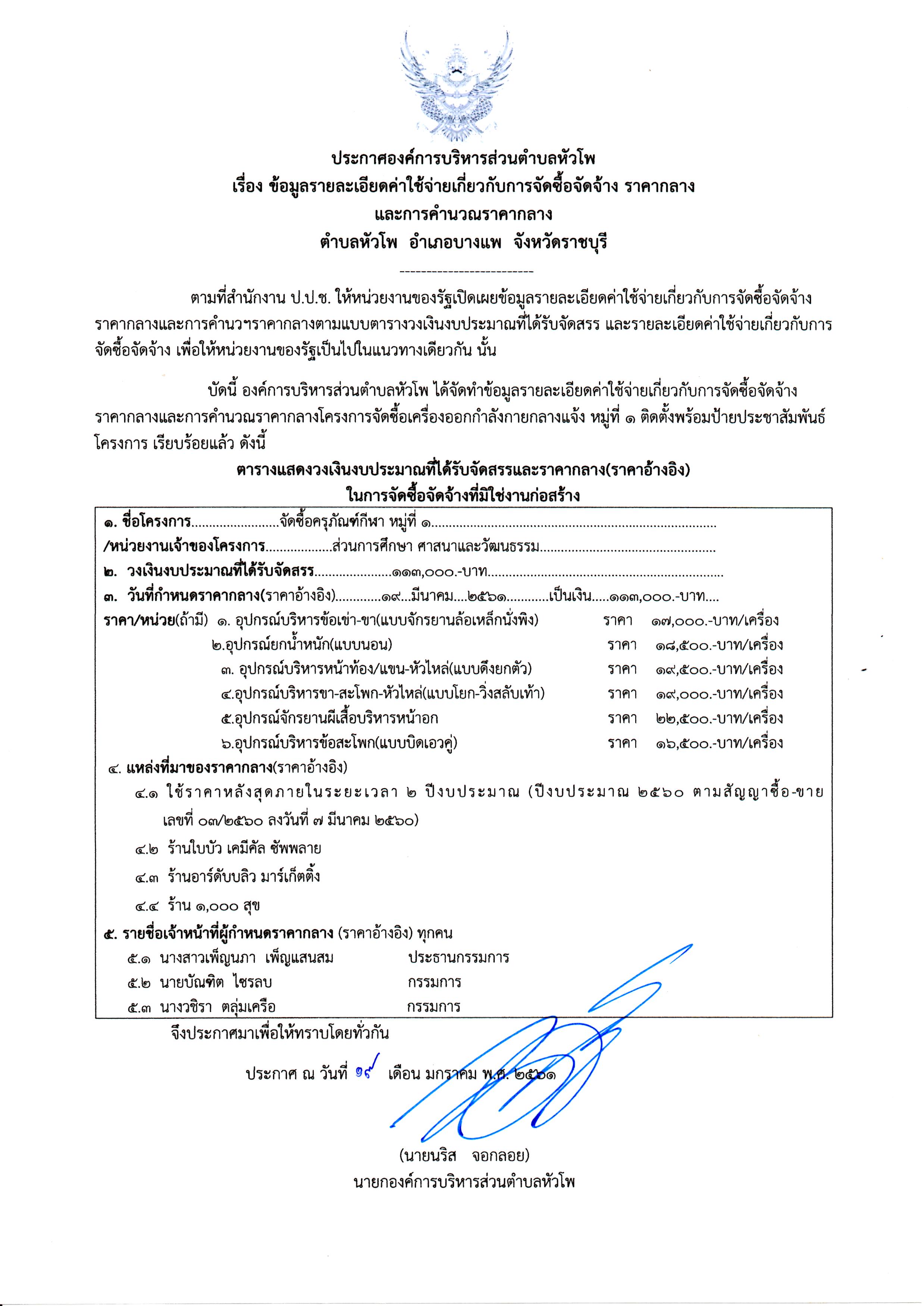 โครงการจัดซื้อครุภัณฑ์กีฬา หมู่ที่ 1