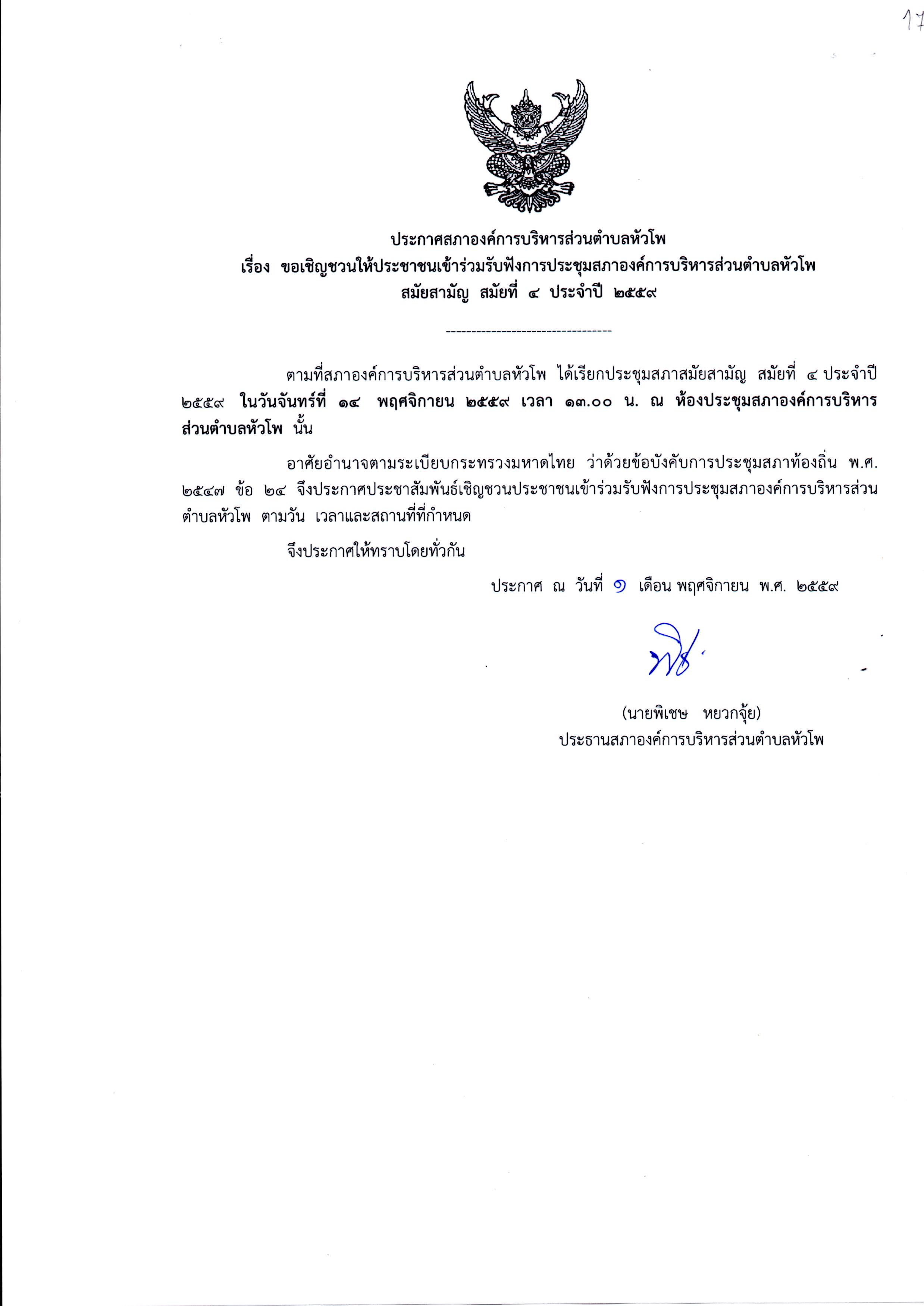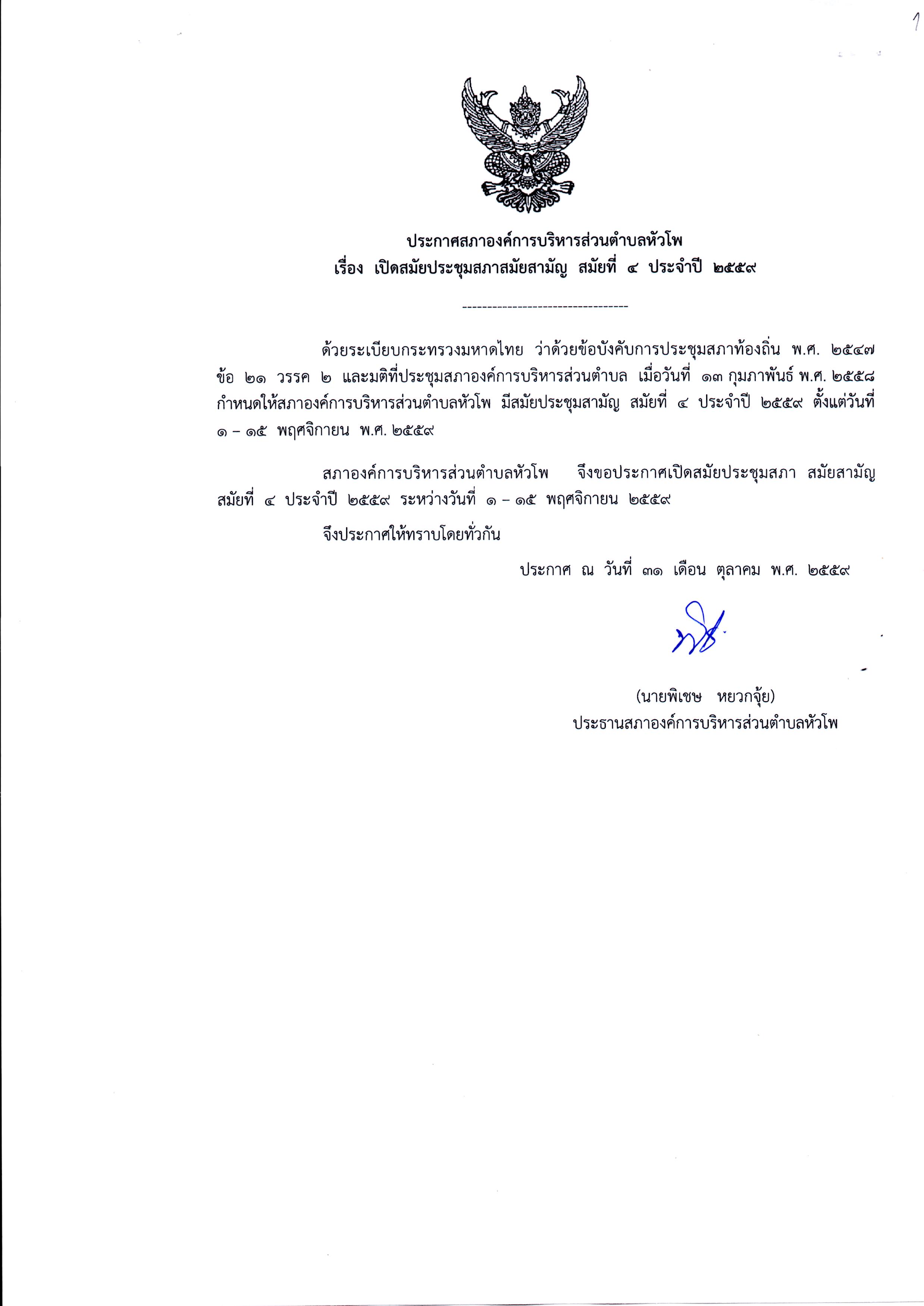 ประกาศสภาองค์การบริหารส่วนตำบลหัวโพ