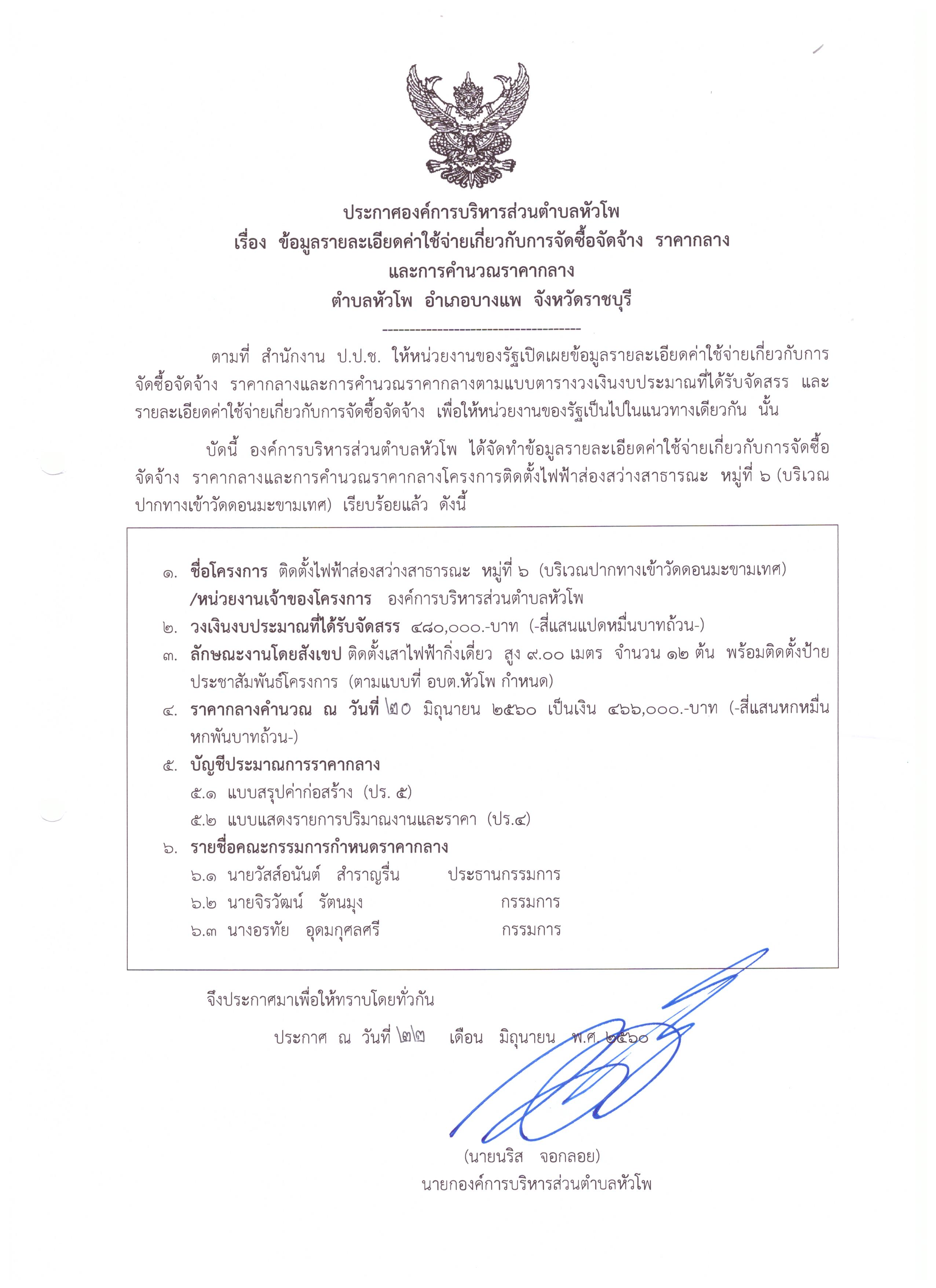 ประกาศ เรื่อง การมอบอำนาจของนายกองค์การบริหารส่วนตำบลหัวโพ