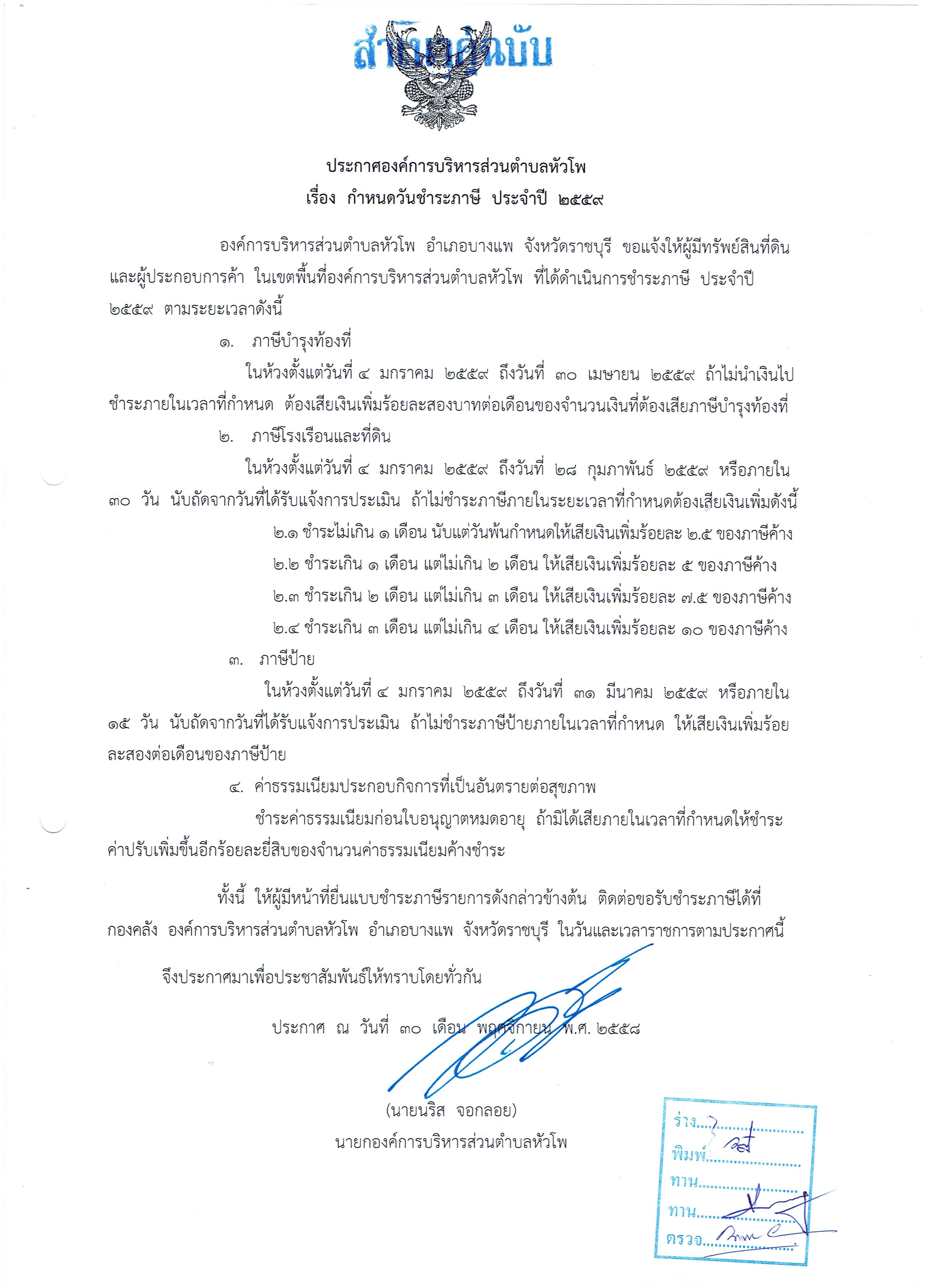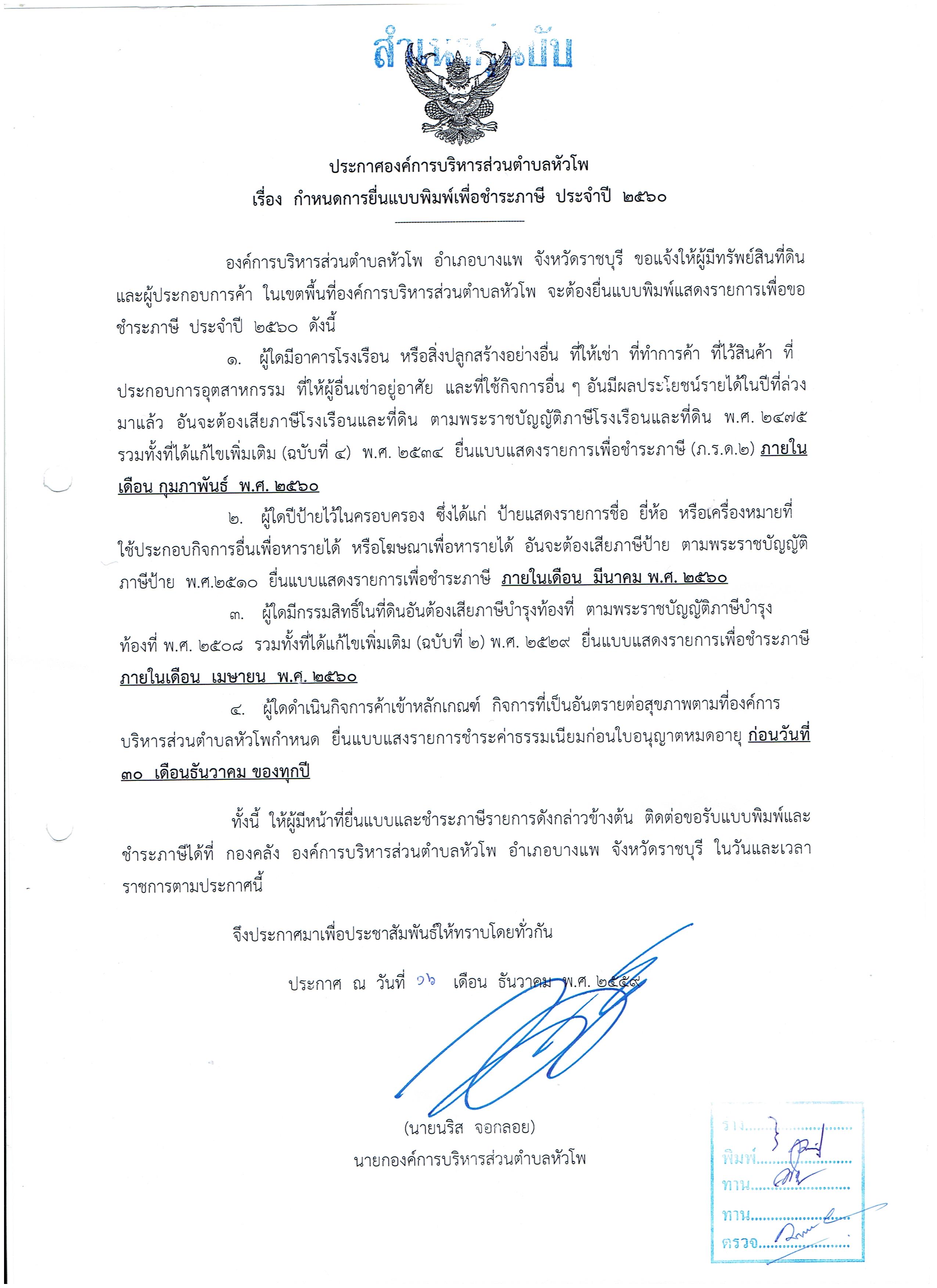ช่องทางการติดต่อ องค์การบริหารส่วนตำบลหัวโพ